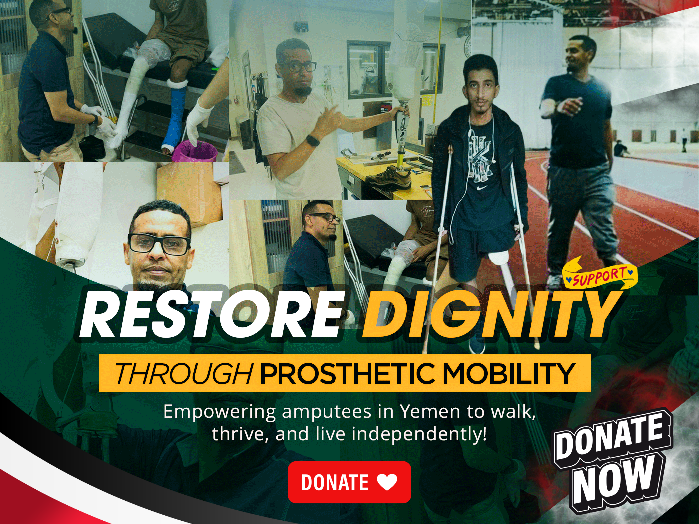 At Amputee Hope, our mission is to restore mobility, confidence, and independence. Right now, we are focused on supporting amputees in Yemen, providing prosthetic care where it is needed most.